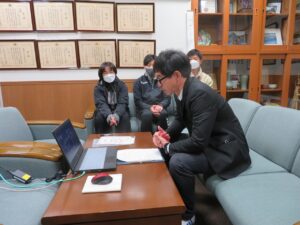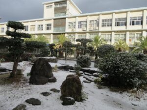 令和4年12月23日(金)、2学期の終業式を校長室からのリモート配信により挙行しました。那賀高校の中庭は、朝から急に降り積もった雪で真っ白な雪景色となりました。