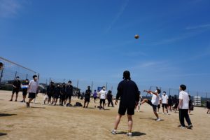 5月2日(月)、GW合間の登校日に球技大会を開催しました。種目はソフトボール(男子)、ドッジボール(女子)、バレーボール(男女)の3種目を屋外で、バドミントン(男女)を体育館で実施しました。感染症と熱中症に大いに気を配りながらの大会でしたが、那賀高校の皆が集う久しぶりの学校行事ということもあって、学校中にとても新鮮な空気が漂っていました。