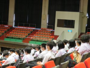 生徒たちは真剣な眼差しで映画を鑑賞していました。コロナ禍で大変な状況の我が国ですが、他国では現在も紛争が耐えず、多くの犠牲者を出している現状があります。そのような中で、平和の有り難さを改めて感じる貴重な1日でした。