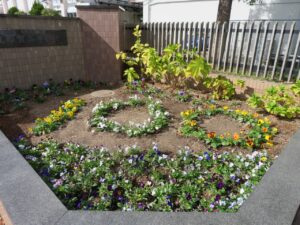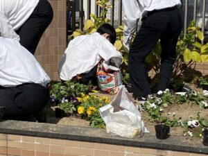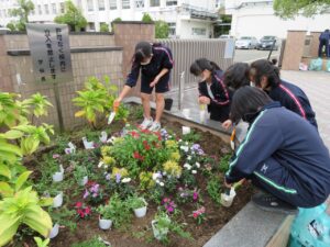 生徒会を始め、他にも多くの皆さんにもご協力いただきましたことに感謝します。ありがとうございました。正門前花壇の100の花文字をまたご覧ください。