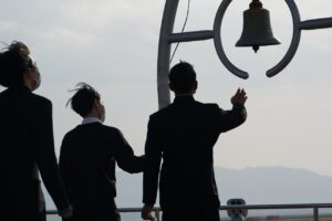 2日目の大阪観光大学でのプログラムは、シアトル研修に向け、空港での対応やホームステイ生活を想定した実践的なもので、大学生や留学生のサポートを受けながら英語力や表現力を磨きました。午後は、大学生と一緒に関西国際空港見学ツアーへ。空港内の施設や仕事について学べるバス見学ツアーは、普段は立ち入ることのできない保安区域も見学することができ、機内食工場や国際貨物地区、給油タンク施設など、空港を支える裏方の施設を車窓見学。オフィシャルガイドから空港や航空機にまつわるエピソードも聞くことができ、航空業界や社会に出て働くということが、少し身近に感じられたようでした。就職活動を終えた4回生やインドネシアからの留学生など、少し先の未来にいる先輩達の多様な考え方や価値観に触れられたことは、大きな刺激になったと思います。