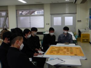 今回のご指導では、大盤将棋を用いて、対局の棋譜をとり、振り返りを行いました。それぞれの局面に対して、良い手と悪い手を分析し、急所においてより良い一手を差すにはどうすればいいか、意見を出し合いました。
