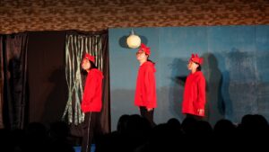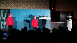 本校演劇部は、この名作『やまなし』を題材とした寸劇ボランティア活動を4年前から取り組んできて、鑑賞した児童からも高評価を得ています。