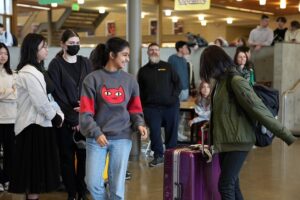 2年生国際科シアトル研修旅行団は10時に学校を出発。たくさんの保護者、職員の見送りを受けバスで伊丹空港へ。経由地の成田空港から予定通り18時30分に日本を出発しました。日付変更線を越えるおよそ9時間のフライト。日本時間の3月11日(土)午前3時44分(現地時間3月10日午前10時44分)無事にシアトルタコマ空港に到着。