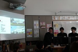 研修4日目、今日から本格的な授業が始まりました。2グループに分かれてイサクア・ハイスクールの日本語クラスの生徒達と一緒に授業を受けました。日本についてプレゼンをしたり、アメリカについて紹介してもらったり、英語と日本語を織り交ぜながら互いに学び合う時間を過ごしました。