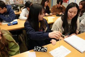 授業最終日の今日は、一日シャドーイングを行いました。ペアの学生と二人一組になって、それぞれ授業に参加。美術や数学など、英語で行われる通常授業はわからないことももちろん多いものの、刺激的な時間だったようです。