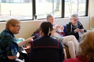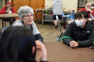 午前中は学校近くのコミュニティセンターで英会話のレッスン。現地で人気のお菓子を使ったものなどもあります。その後、老人ホームを訪問し、編み物や手芸などを一緒にしながら交流。ダンスと歌を披露しました。思い思いにゆったりと過ごされている利用者さんの様子から暮らしの豊かさを垣間見ることもできました。