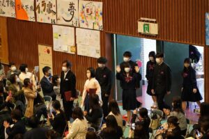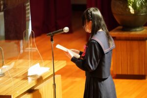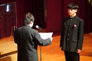 卒業証書授与では、担任の先生の呼名に返事する卒業生の姿を久しぶりに見ることができました。また、学校長式辞では、校長先生は着任してからの2年間を振り返りながら卒業生に感謝の気持ちを述べました。