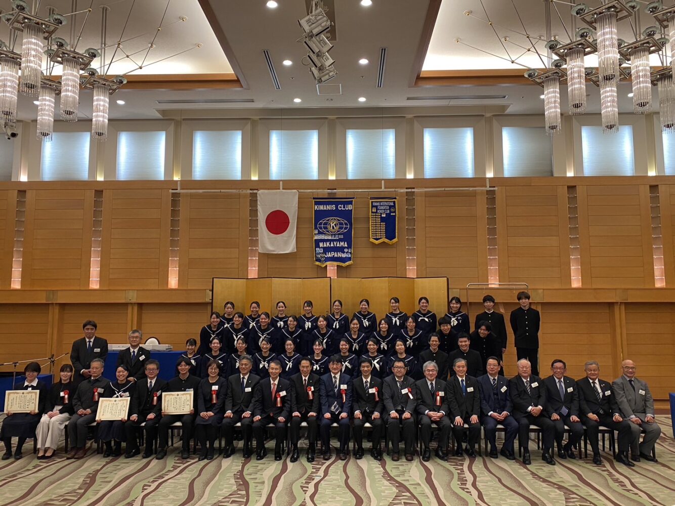 令和5年3月28日、アバローム紀の国孔雀の間において、第27回和歌山キワニスクラブ青少年のメッセージ『きらり』の表彰式が行われました。