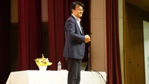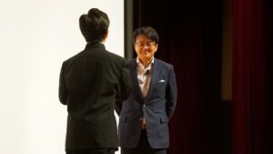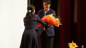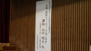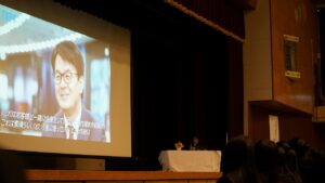 令和5年12月19日(火)本校体育館において、那賀高校創立100周年記念講演会を開催しました。本校卒業生である山口 明夫氏(1983年3月卒業)に「最新のテクノロジーで拓く未来」の演題で講演をしていただきました。山口氏は、講演の中で、ビデオ映像を多く取り入れながら「変えていかなければならないことを変えていく勇気と、今のまま続ける変えない勇気がいること」「お客様のために、世の中のために、役立つことは何かを常に考えていること」「IBMがやってきたこととこれからやっていくこと」「AIでできること」「最新である量子コンピューターができること」「一人一人が活躍できる企業を作っていく」などをわかりやすく説明してくれました。最後に、43年前の高校生だった自分に会って伝えるならば、「人と比較してはだめ、昨日の自分と今日の自分を比較してどうかわったのかを考えることで自分を成長させられる。人にありがとうと言える人になること」と言いたい。「今、振り返れば、人生の中で高校時代、那賀高校の時が一番楽しかったと思う。」と話されました。