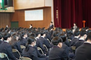 本校では、そうした生徒のために、職員全員でサポートする体制も整えていますので、そんな時には、担任の先生や話をしやすい先生、部活動の顧問の先生方に相談して、自分一人で抱え込まず早い段階で解決するようにしてください。なお、保護者の皆様におかれましては、こうした子供たちのさまざまな挑戦、或いは成長期特有の悩みを、家庭として見守ってやっていただきたいと思います。子供たちの将来を豊かなものにするために、皆様方と協力しながら、学校としても精一杯努力していくことをお約束しますので、よろしくお願いします。