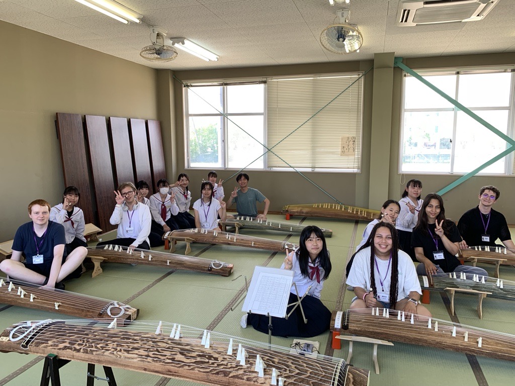 私たちは毎週4回活動しています。月曜日には外部の講師の先生が指導に来てくださいます。先生の指導はきびしいものではありますが、毎日の練習に励み、日々上達しています。 海外の高校生が那賀高校を訪問した際には琴の演奏を体験してもらったり、岩出駅で演奏をして地域の人たちとも交流をしたりしています。