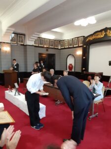 令和6年9月2日(月)16時から和歌山県庁本館正庁の間で「高等学校文化系クラブ等の全国大会上位入賞者表敬訪問」が実施されました。本校からは、情報部が参加しました。対象となった大会、メンバーは、以下のとおりです。
